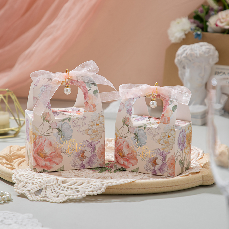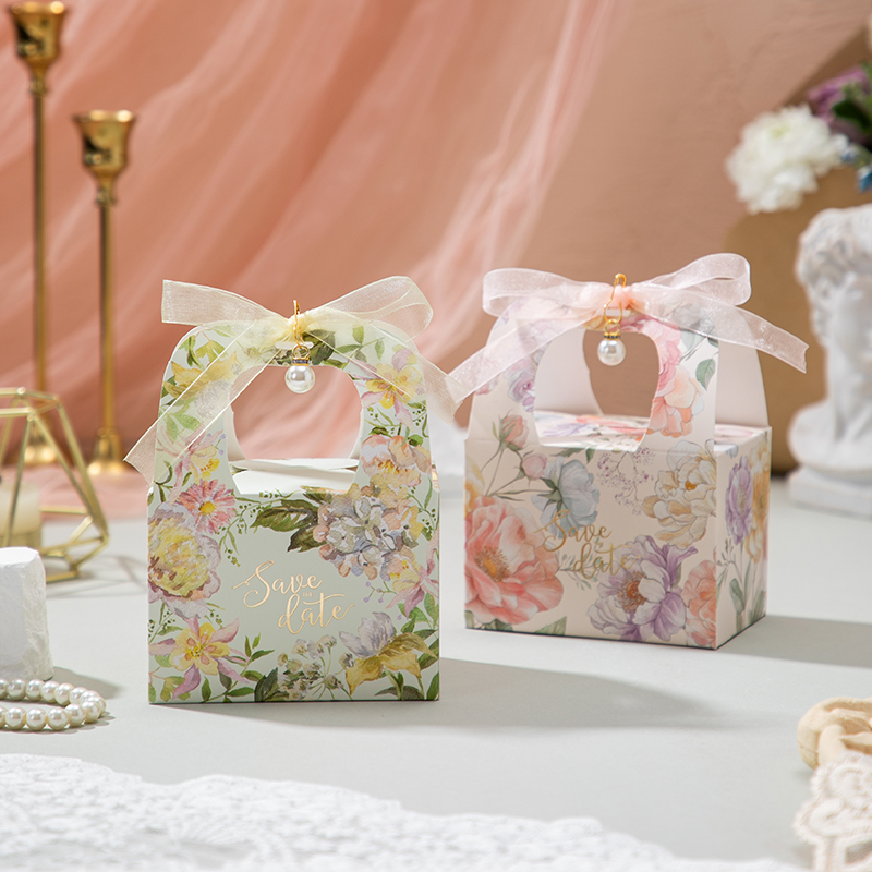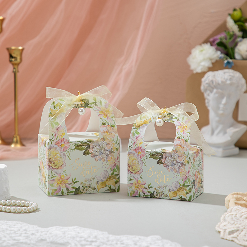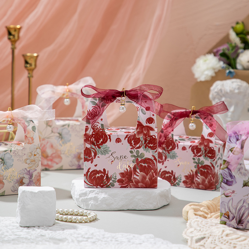 煜天喜糖盒高级感结婚喜糖糖果袋子喜糖袋免折叠婚礼花朵手提糖袋