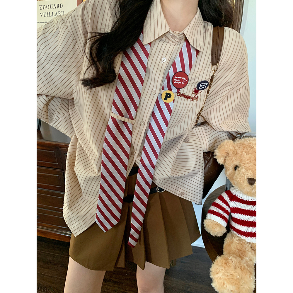 女设计感小众复古Polo领长袖 条纹领带衬衫 衬衣 美式 春秋2025年新款