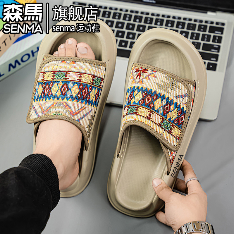 外穿防滑厚底魔术贴运动踩屎感海边沙滩凉鞋 夏季 男士 森马勃肯拖鞋