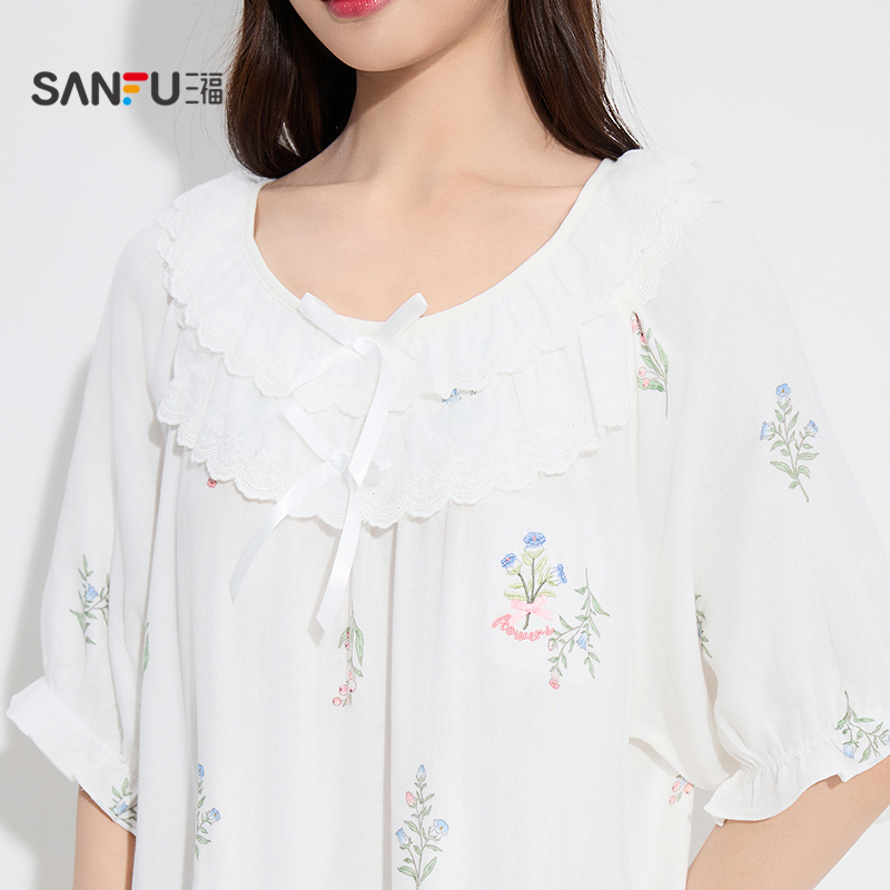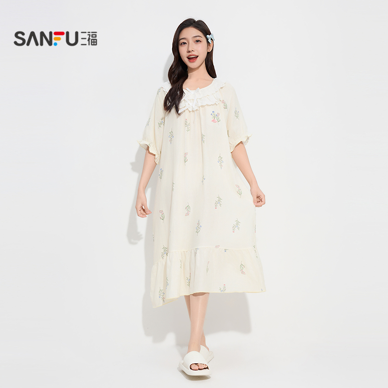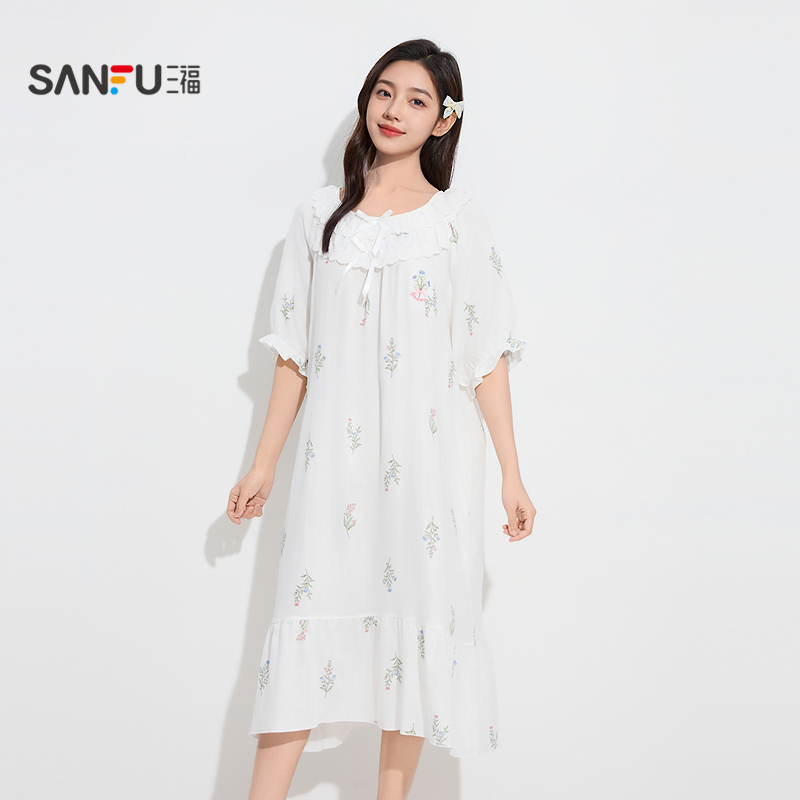 可爱睡衣家居服全棉女款 芬腾睡裙女士夏季 纯棉大码 短袖 连衣裙 薄款