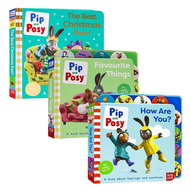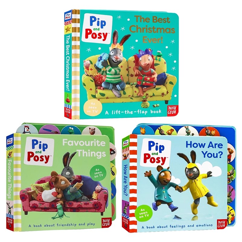 Pip 纸板翻翻书儿童故事纸板书标签书友谊主题 Ever 英文原版 绘本 The Posy and Christmas 皮普和波西系列3册套装 Best Tie