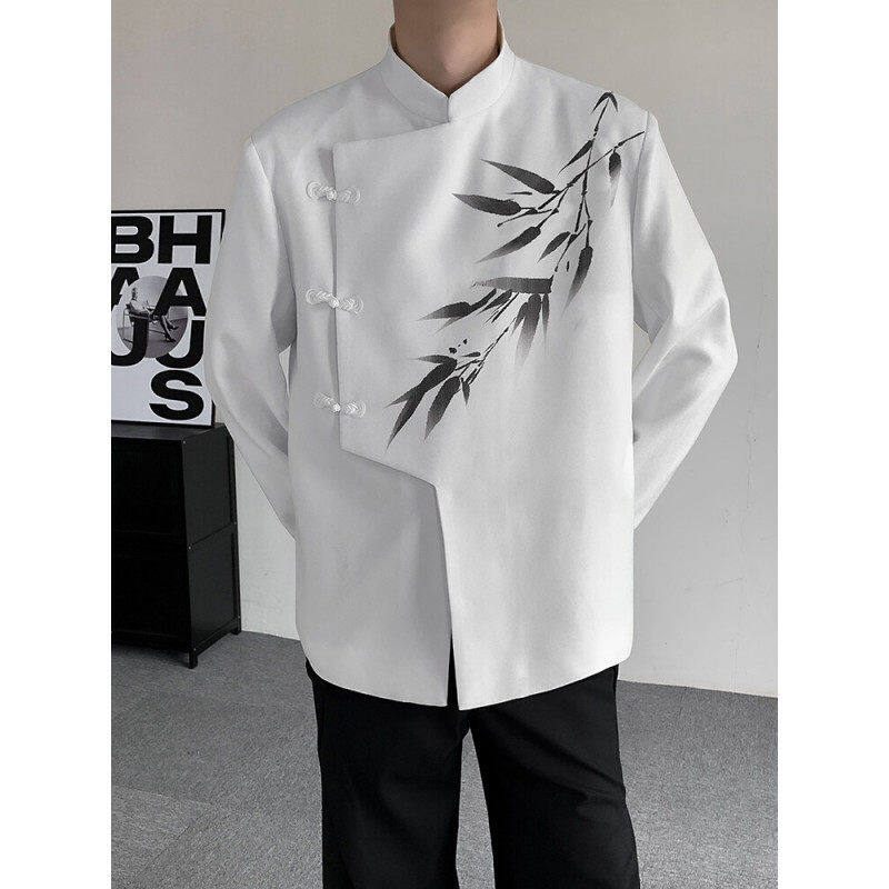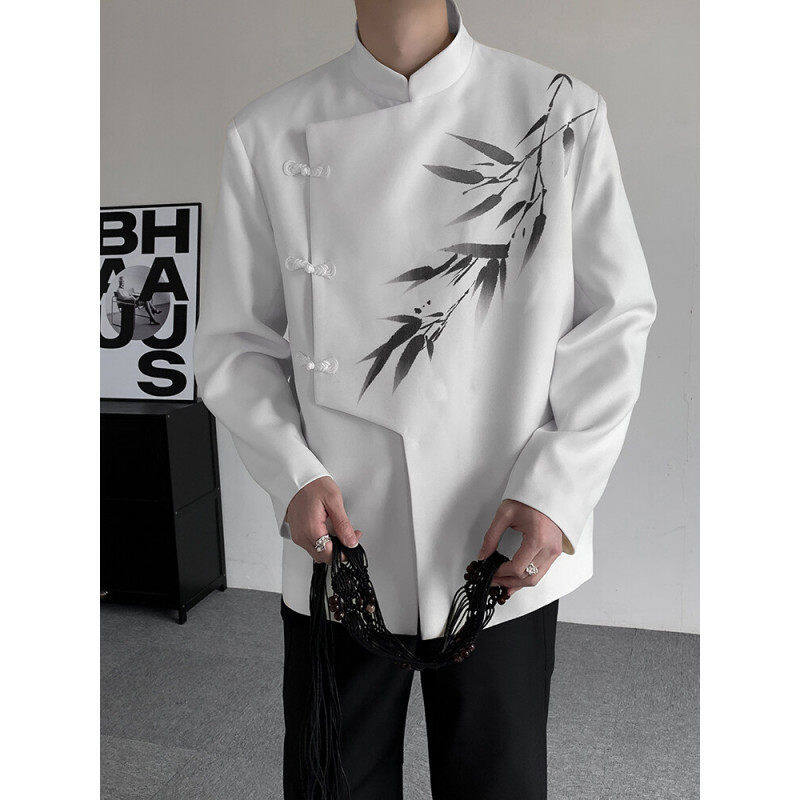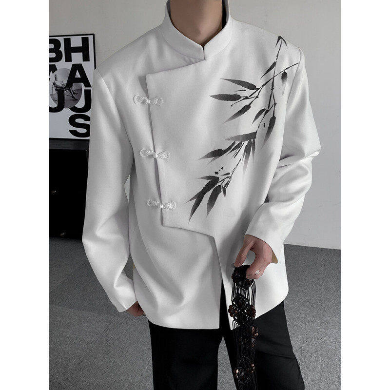 白色中山装 新中式 大码 套装 结婚登记国风礼服外套 立领斜襟盘扣西装
