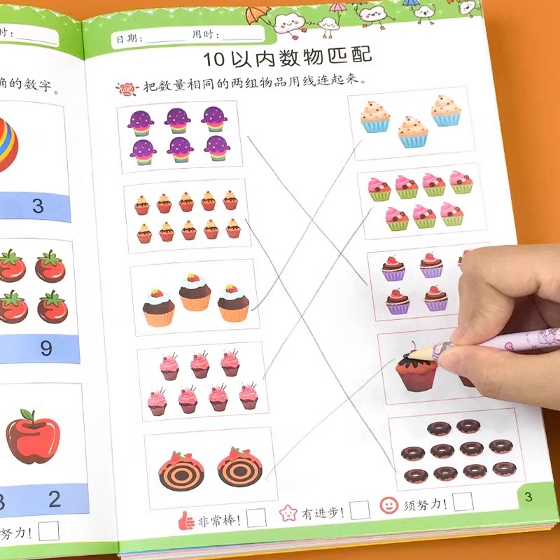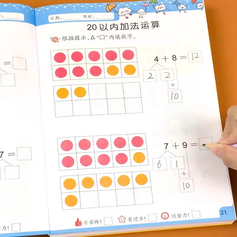 幼小衔接发现数字认识数字十格方阵教具数字运算凑十法破十法思维逻辑 6岁幼儿趣味数学练习册一日一练 数感启蒙练习本全套3册