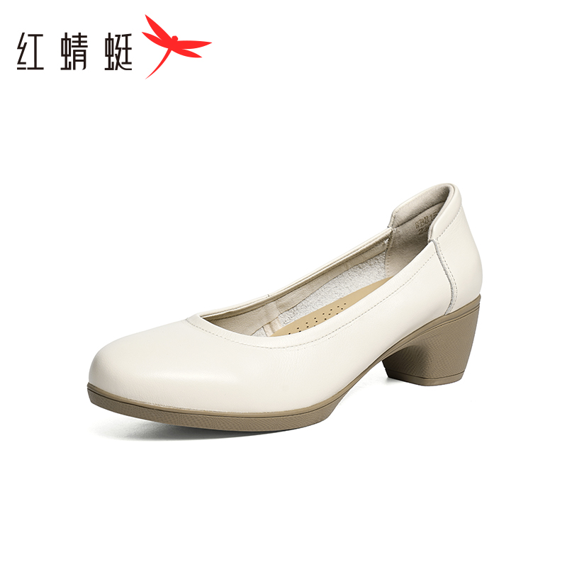 时尚 舒适粗跟一脚蹬黑色通勤工作鞋 单鞋 新款 女2025春季 红蜻蜓女鞋