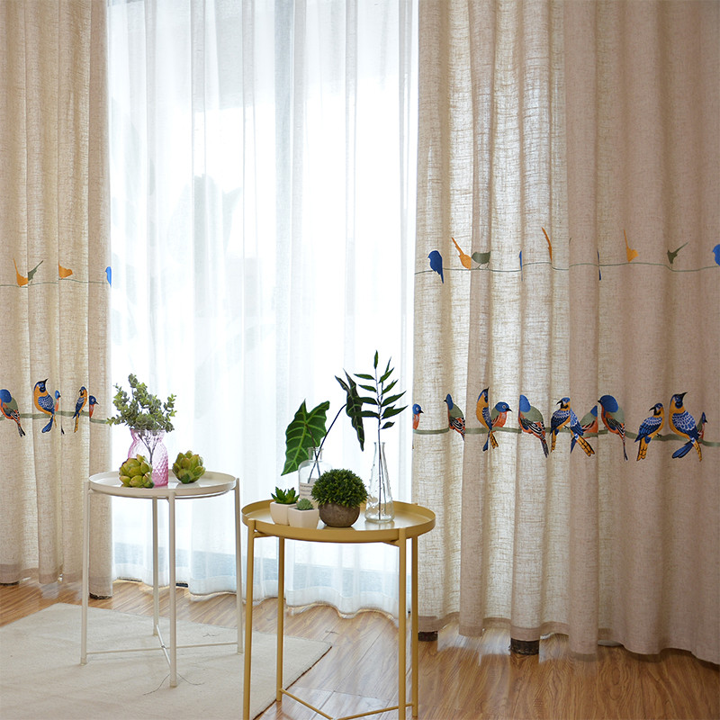 亚麻窗帘遮光遮阳刺绣窗帘布飘窗卧室阳台成品清仓中式 简约挂钩式