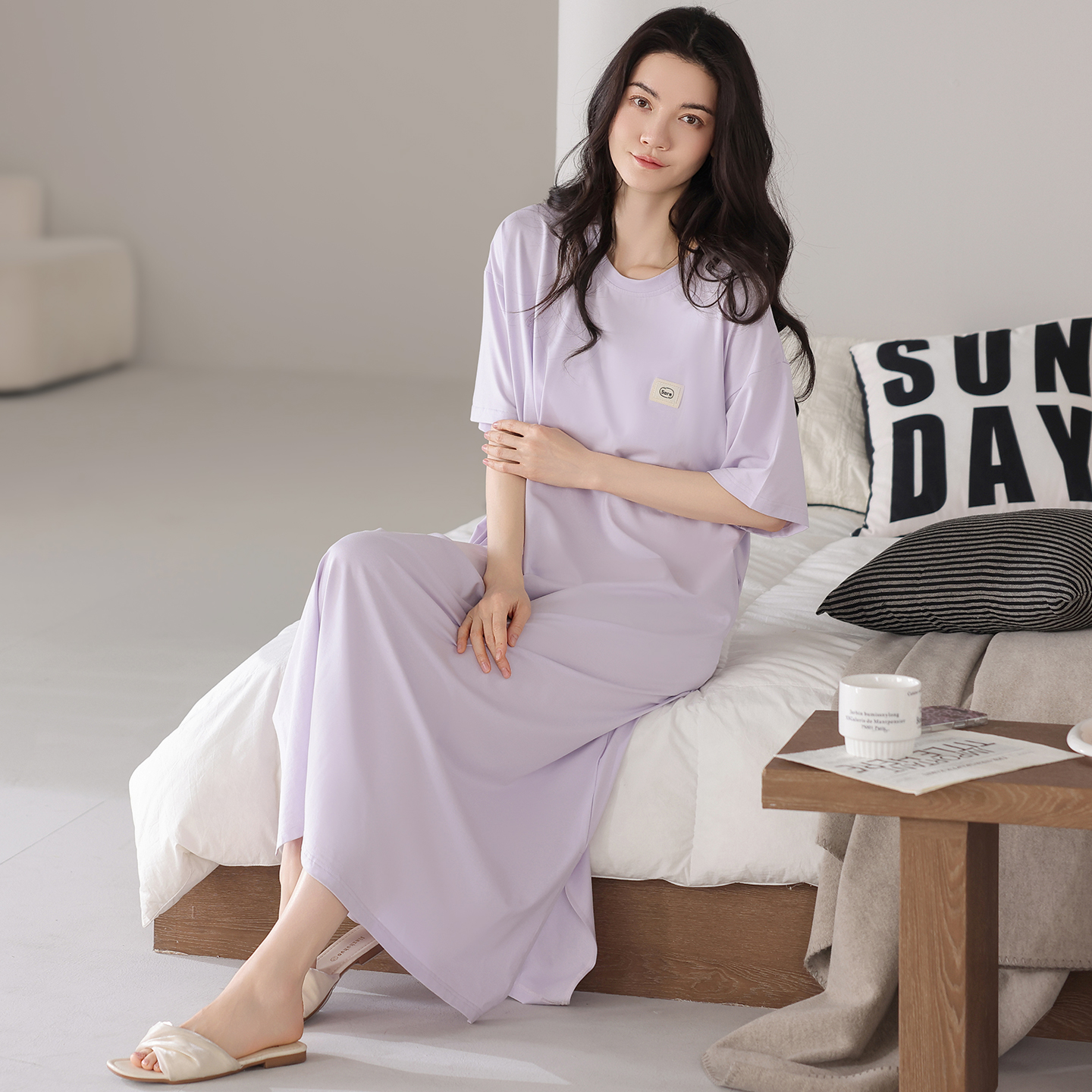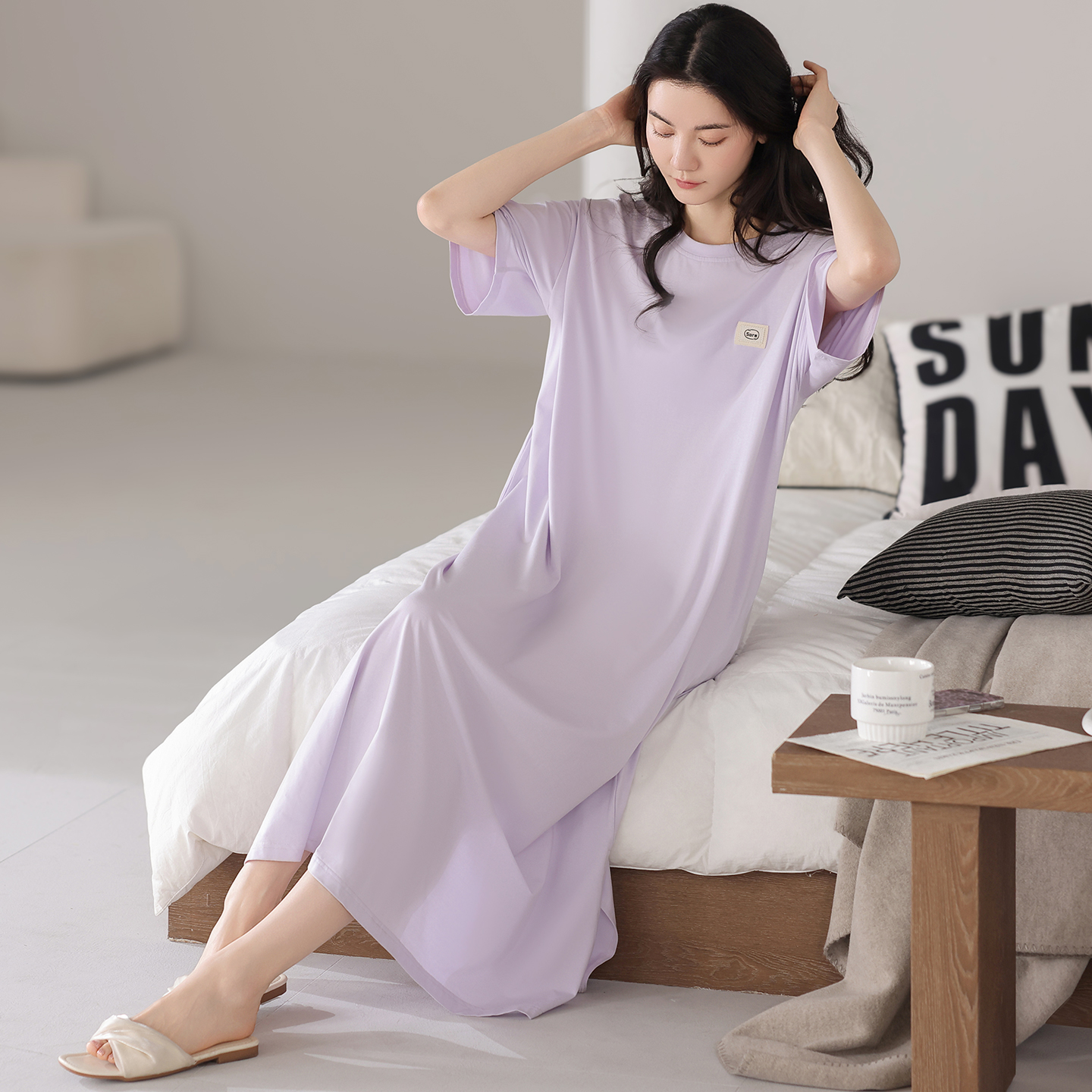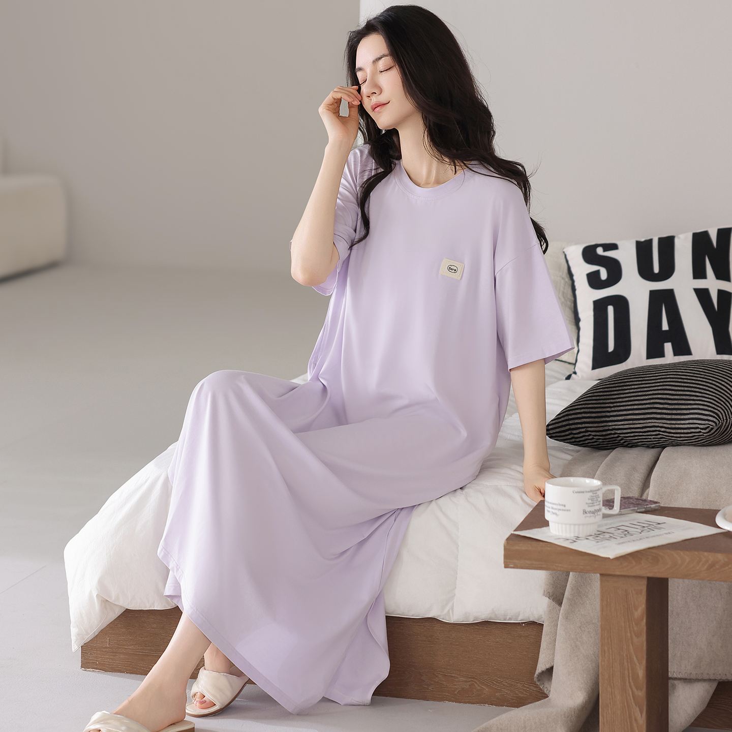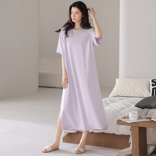 宜而爽莫代尔带胸垫短袖 睡衣裙女夏天宽松透气莫代尔可外穿连衣裙