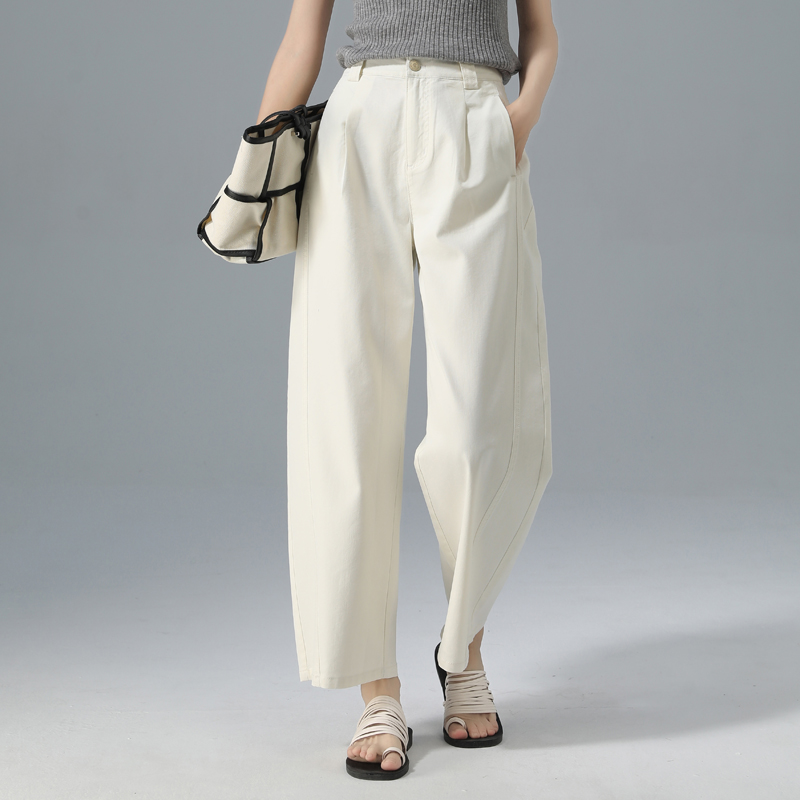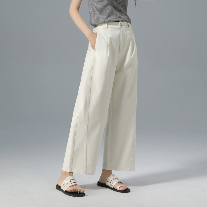 女春秋新款 休闲直筒慵懒松弛感裤 高腰垂感窄版 裤 子 西装 黑色阔腿裤