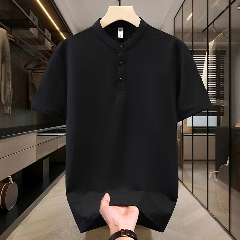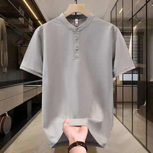 男士 T恤衫 修身 复古美式 体恤 亨利领纯色光板休闲修身 百搭半袖 短袖