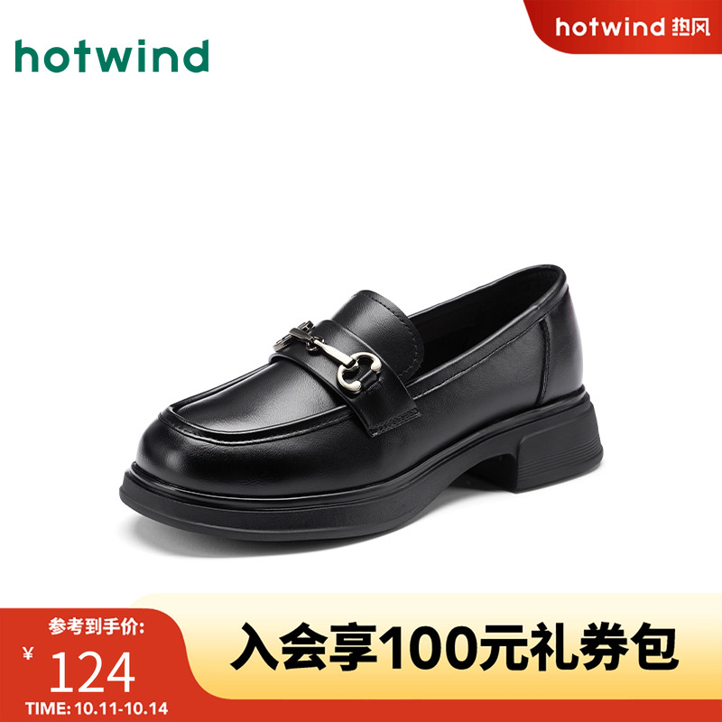女鞋 百搭套脚通勤单鞋 2025年秋季 纯色厚底鞋 新款 热风粗跟乐福鞋