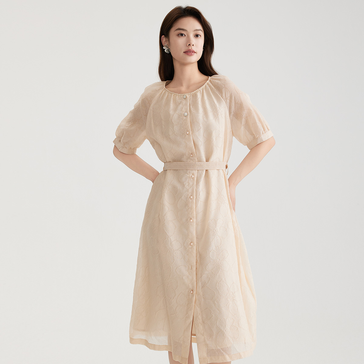 肌理气质显瘦收腰中长款 新款 A字裙子 连衣裙2025夏季 谷邦提花短袖