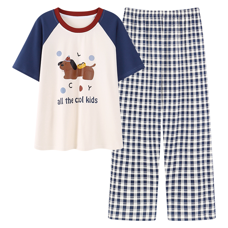 七分裤 套装 2025新款 猫人睡衣女士夏季 家居服套装 短袖 圆领大码 薄款