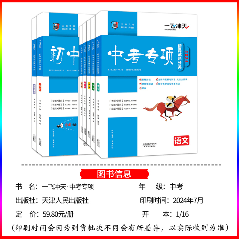 天津中考专项语文数学英语物理化学历史道德法治总复习历年真题九年级初三学业水平考查2025年 一飞冲天2026新版 科目任选