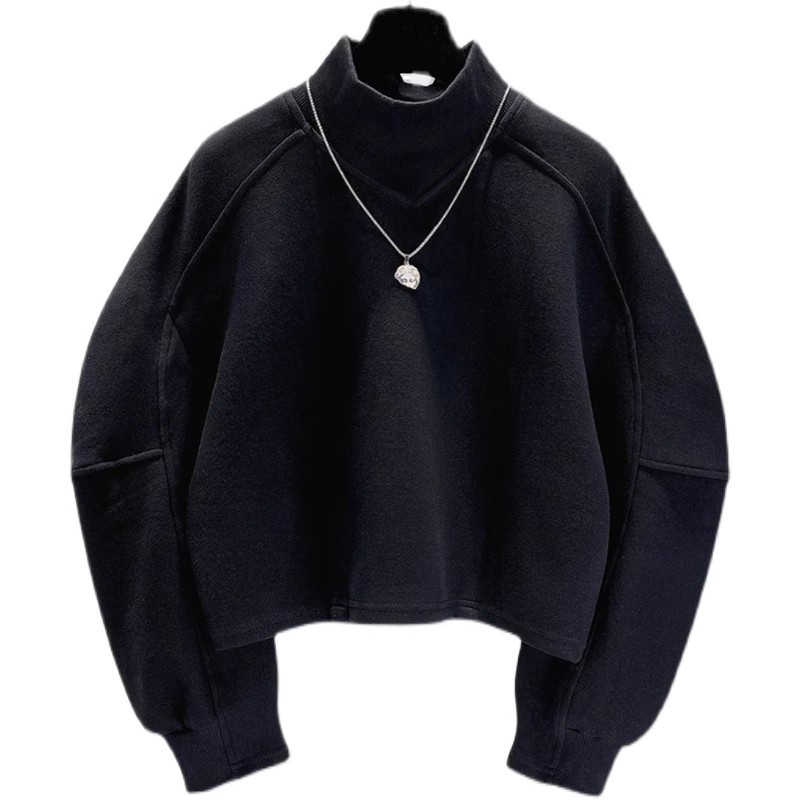 韩版 外套上衣女装 新款 短款 ins潮 宽松加厚秋冬装 高领卫衣2023秋季