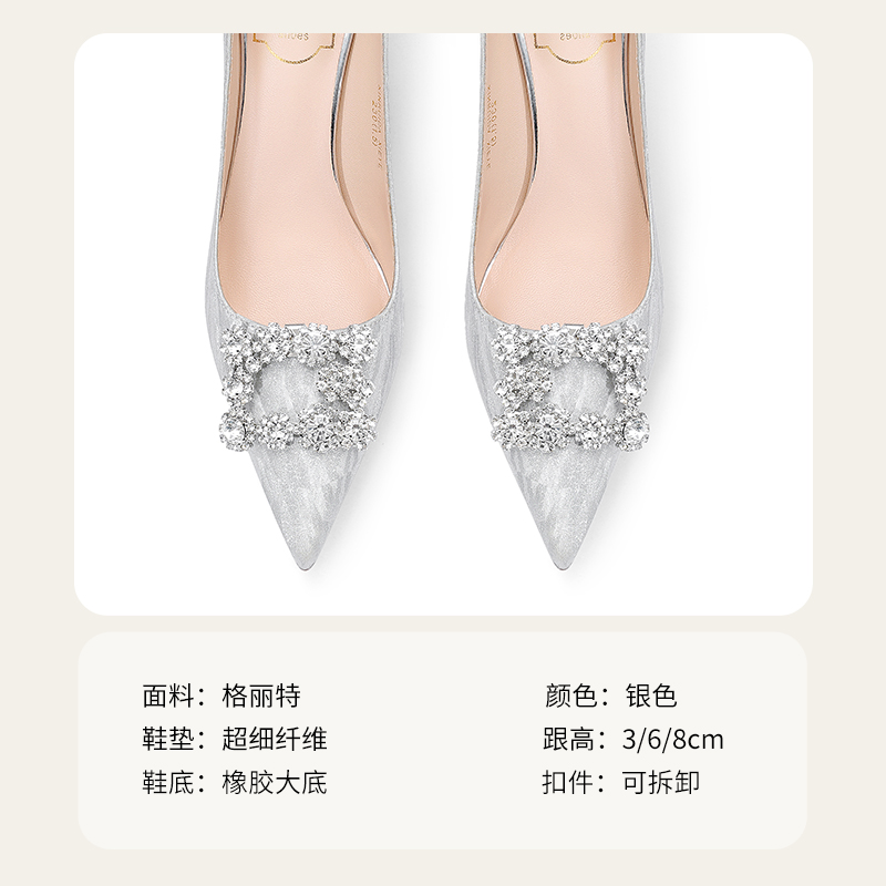 新娘主婚纱银色高跟鞋 爱丽拉法式 春季 女2025新款 不累脚高级感 婚鞋