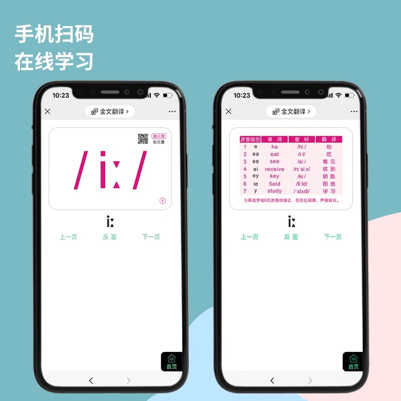 音标卡片48张新版 英语国际48个小学生初中和自然拼读有声入门教材教程学习神器快速记单词教学卡教具专项练习速记卡加厚文化训练