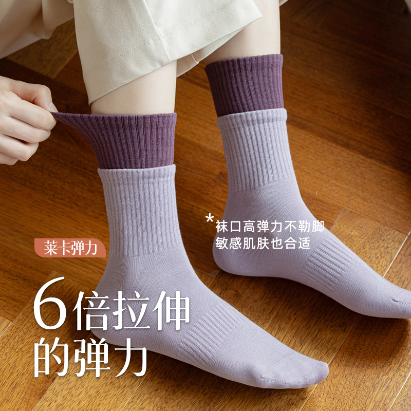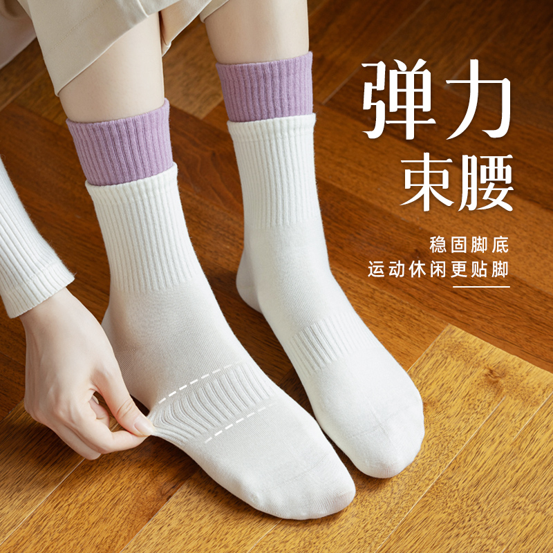 透气无骨长袜运动风 中筒袜防臭全棉堆堆秋冬款 袜子女款 纯棉春秋季