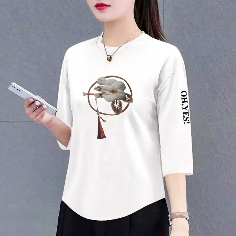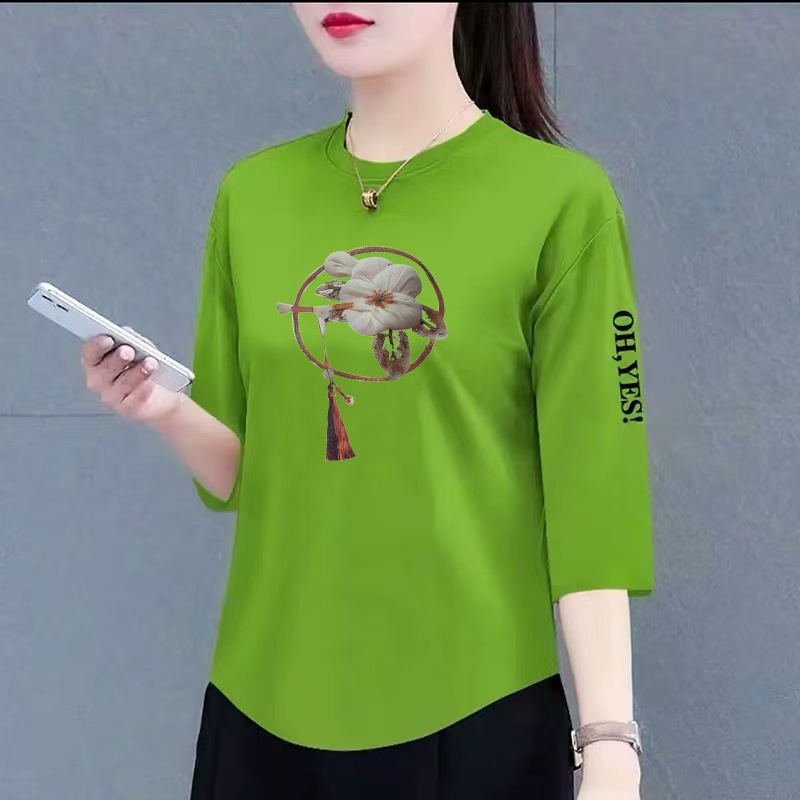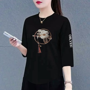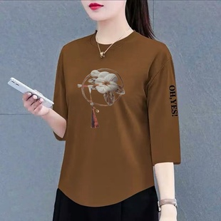 时尚 T恤女妈妈中老年新中式 洋气减龄上衣 中袖 清仓捡漏外贸七分袖