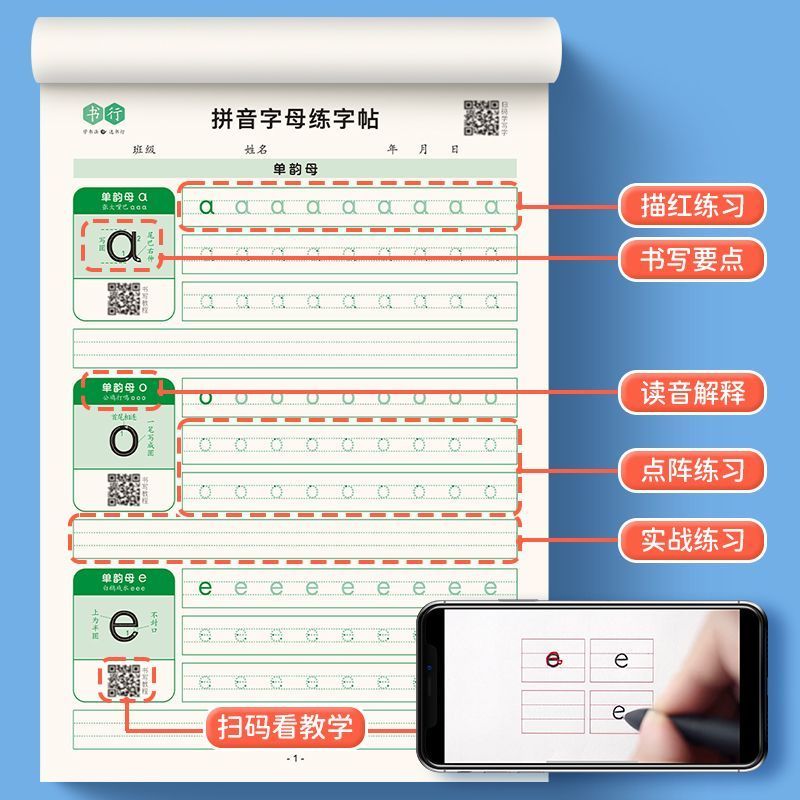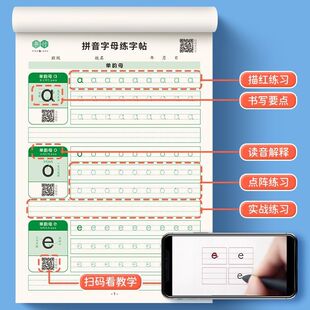 儿童数字拼音描红本点阵硬笔练字帖幼儿园学前班练字本初学书法临摹字帖启蒙学前3 6岁初学者写字帖小学生练习入门