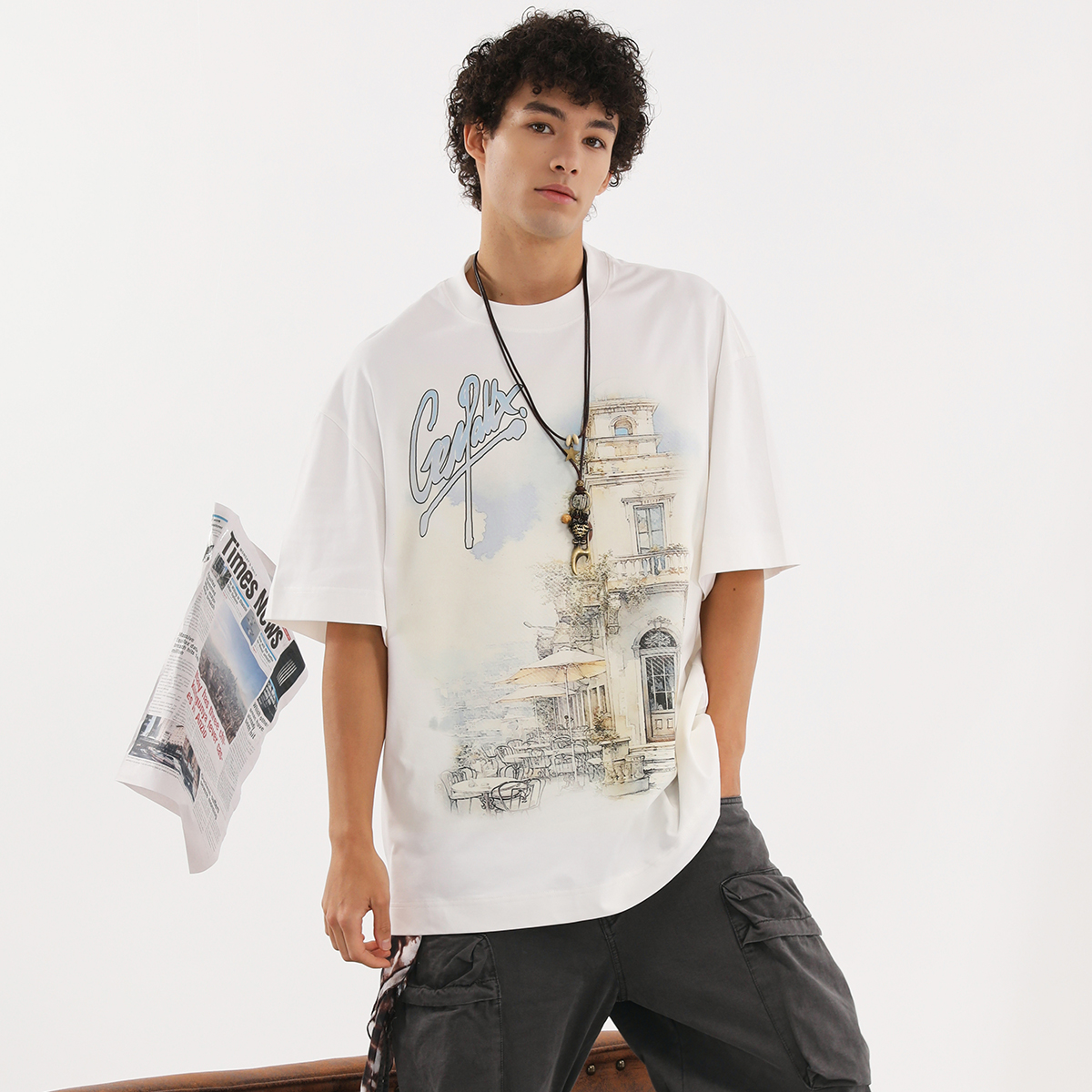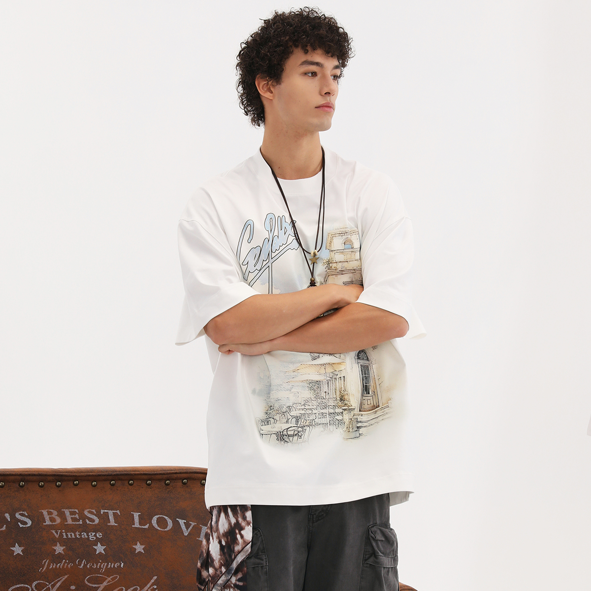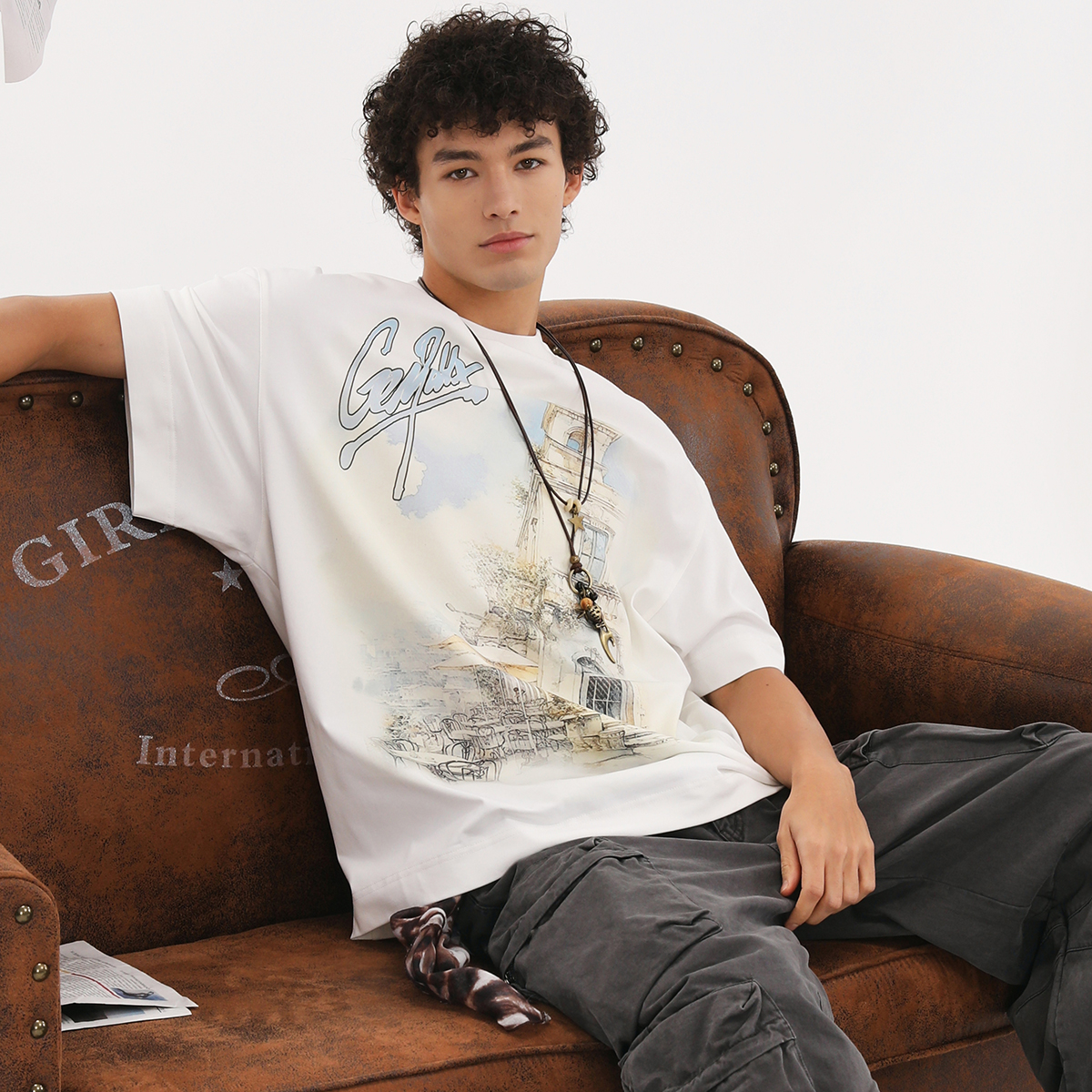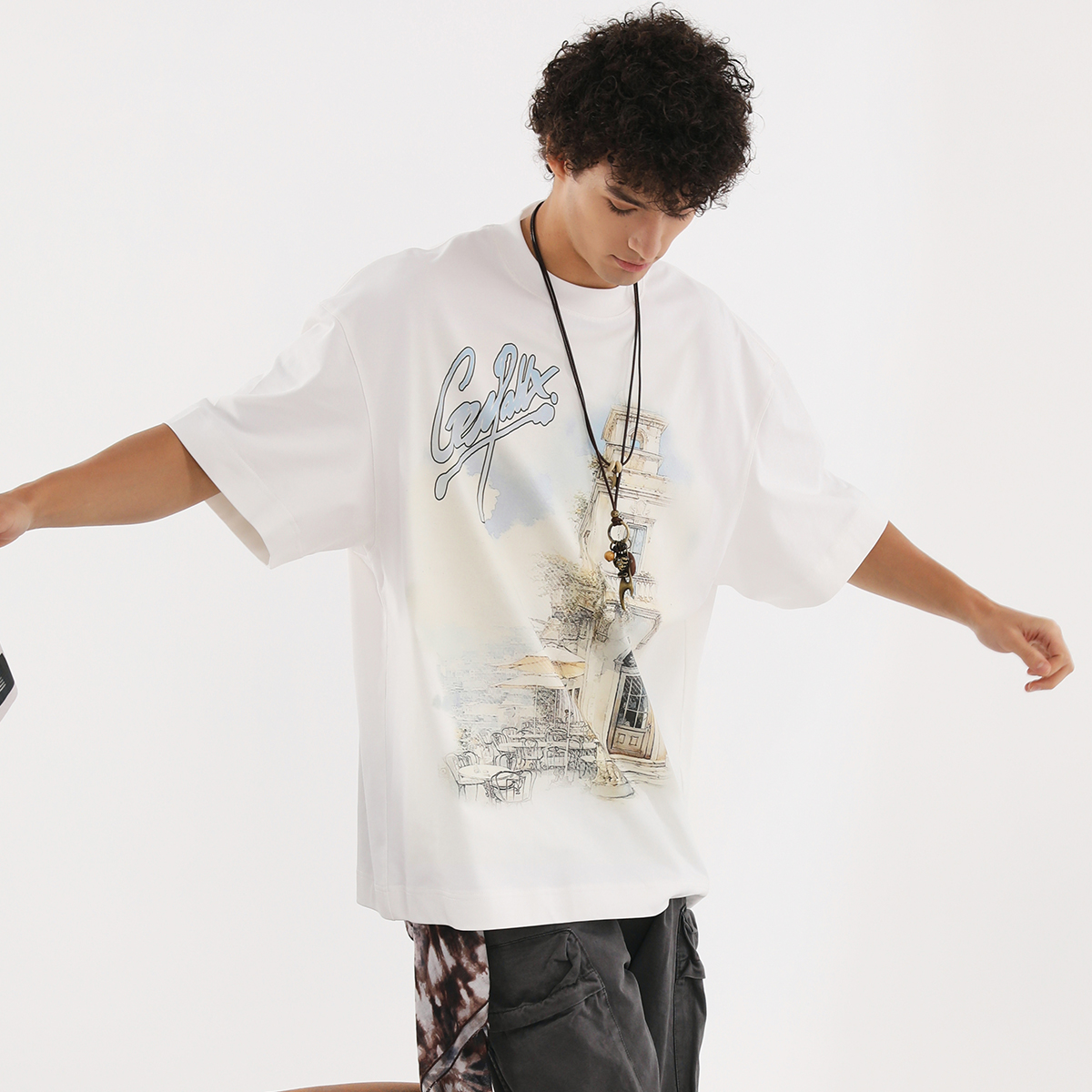 正肩合身上衣张子墨同款 T恤卡通印花美式 短袖 GENANX闪电潮牌夏季
