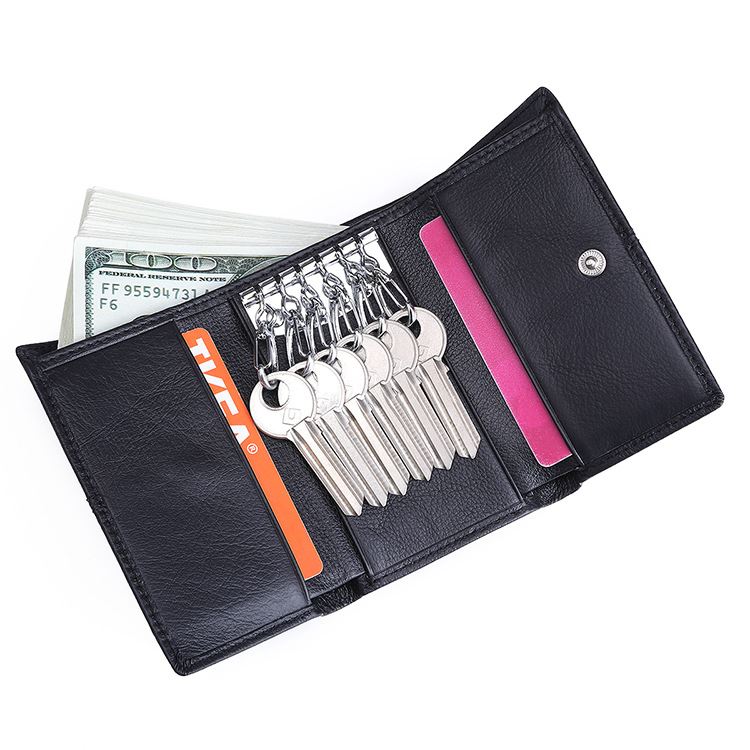 源头工厂直供新款 头层软质感多卡位商务休闲三折钥匙包