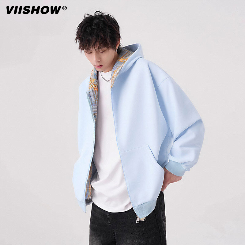 春季 卫衣男女款 重磅格子外套宽松休闲夹克 连帽开衫 VIISHOW美式