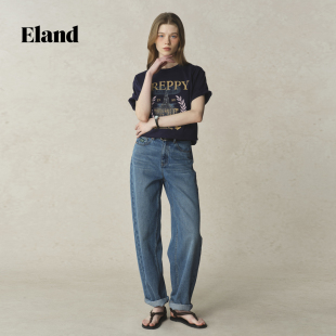 上衣2025夏季 Eland衣恋T恤女胸口图案运动休闲短袖 新款 100%棉