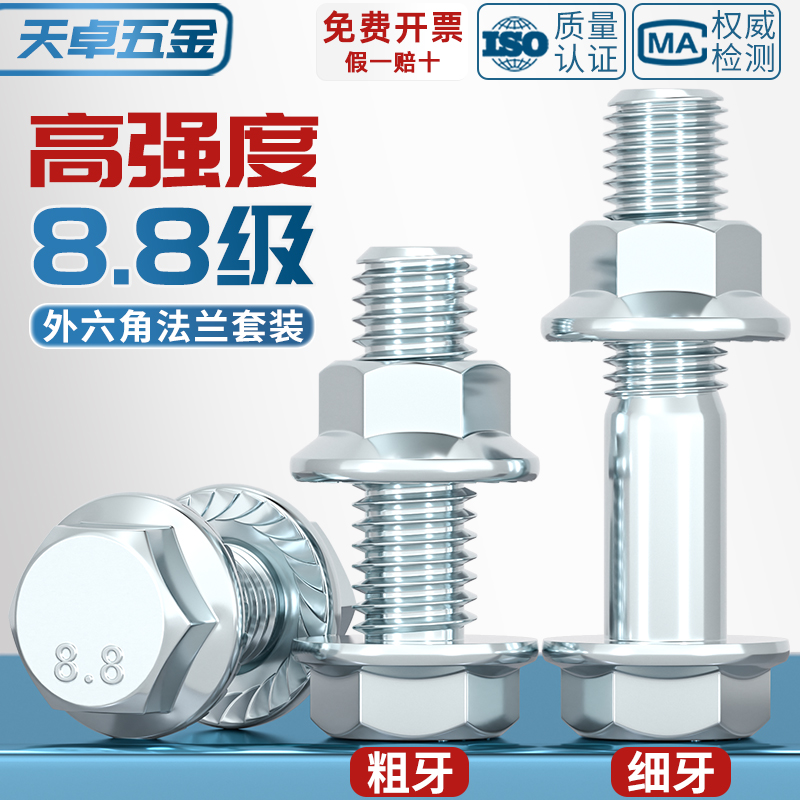 8.8级法兰螺丝螺母套装 外六角带垫法兰面防滑螺栓大全m5m6m8m10L