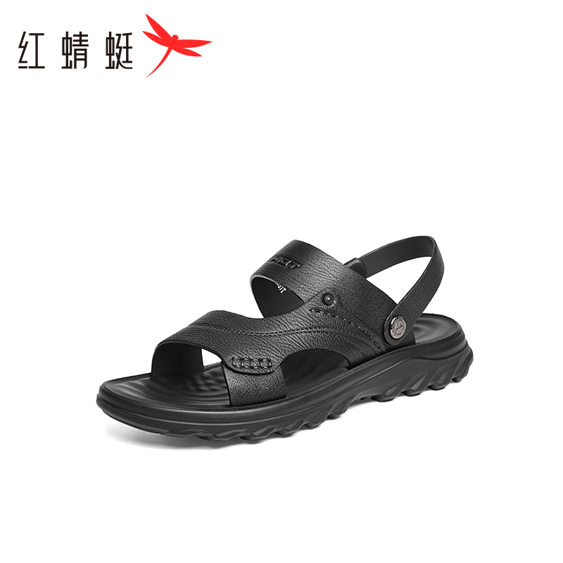 男鞋 红蜻蜓男士 新款 2025夏季 羊皮软底舒适两穿中老年爸爸凉拖 凉鞋