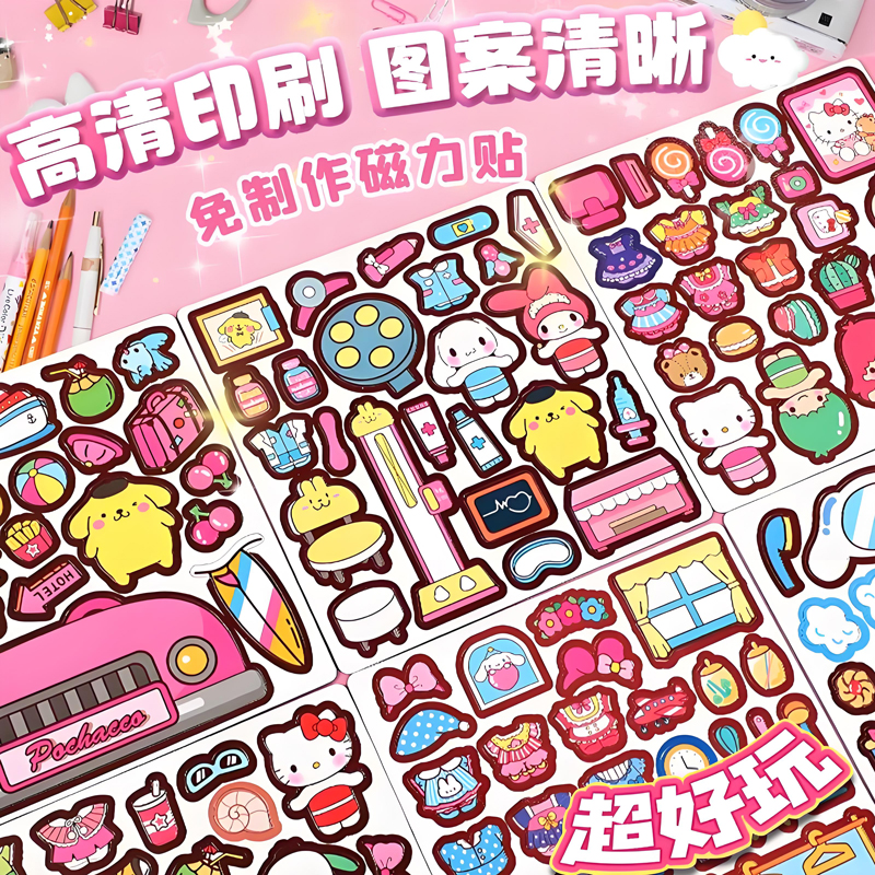 库洛米磁力安静书磁力贴新款 女孩玩具儿童铁手工粘贴画磁吸医院