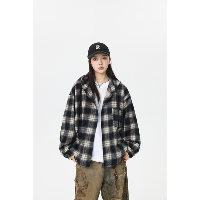 薄款 春秋季 美式 时尚 回力衬衫 潮流痞帅格子情侣衬衣男款 外套男长袖