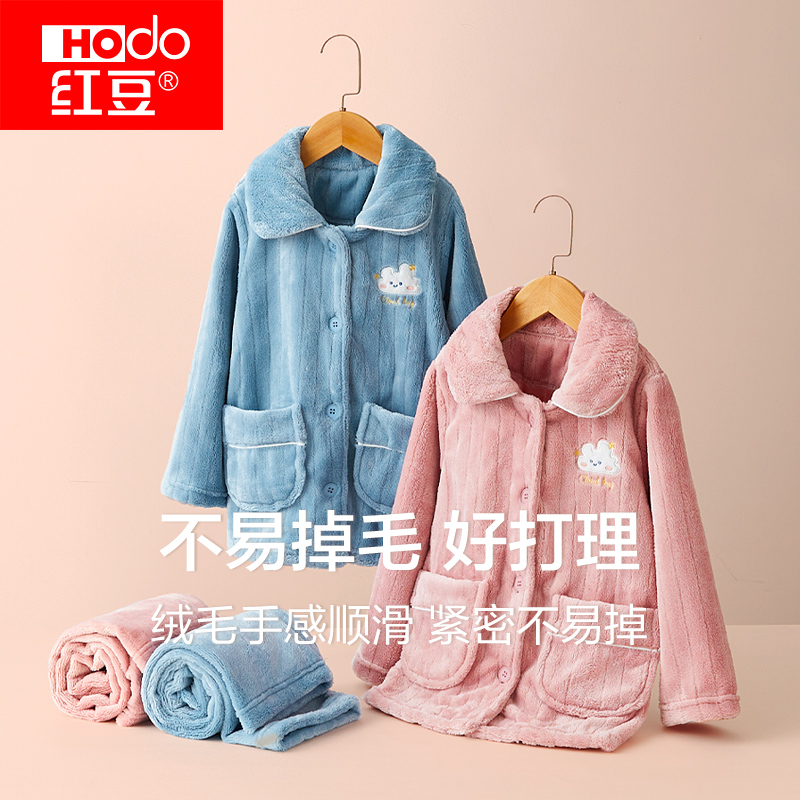 红豆儿童法兰绒睡衣秋冬男童女童宝宝珊瑚绒加绒加厚家居服套装