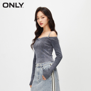 ONLY奥莱 针织衫 秋季 短款 女 设计感休闲百搭V领修身