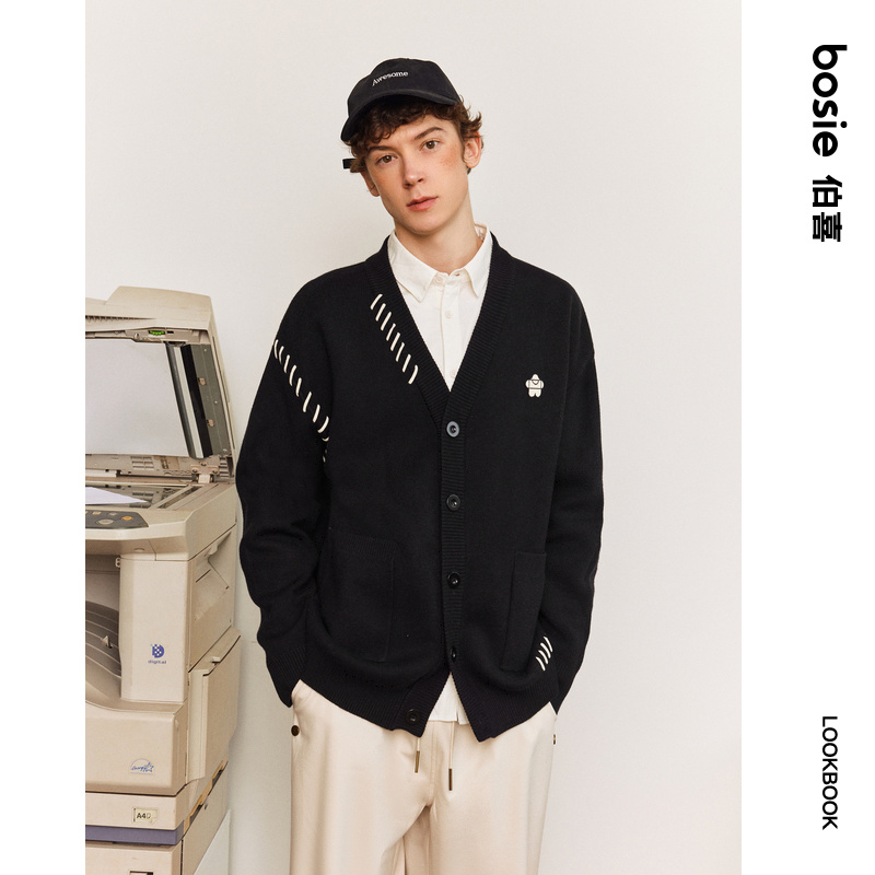 王诗晴同款 开衫 Navigare小帆船翻领羊毛针织衫 男女同款 毛衣 秋季