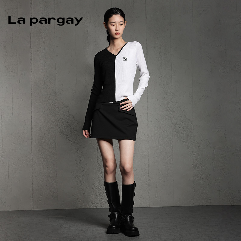 新款 女式 个性 纳帕佳套头长袖 修身 2025春季 时尚 显瘦上衣 V领针织衫