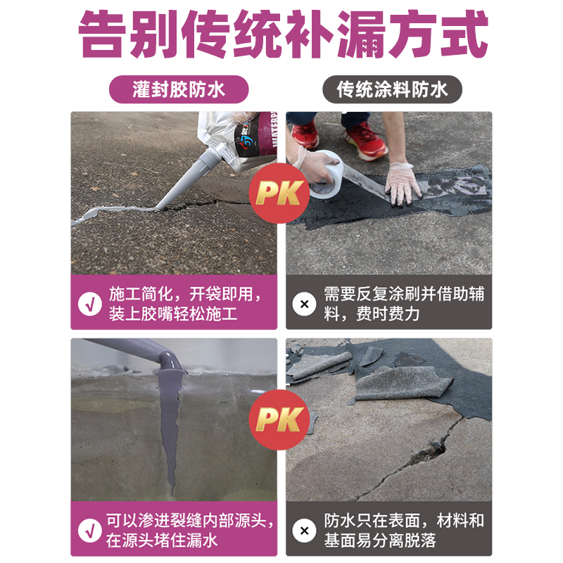 裂缝防水补漏屋顶地面灌缝胶水泥缝隙修补填缝剂楼顶裂缝密封堵漏