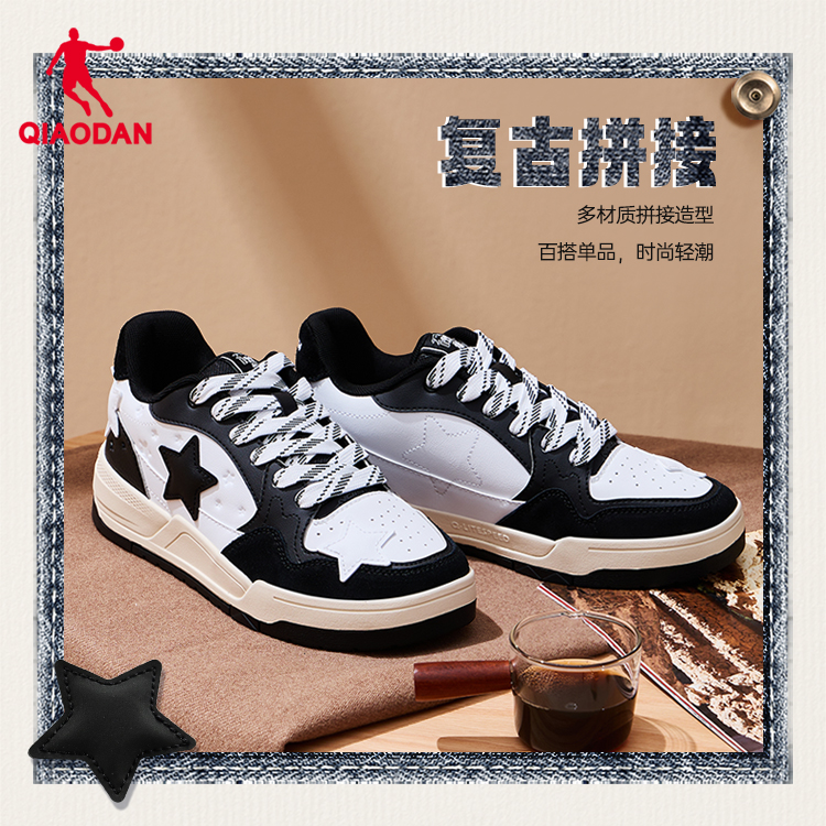乔丹板鞋 黑白面包鞋 女2025秋季 休闲潮流男运动鞋 新款 星星鞋