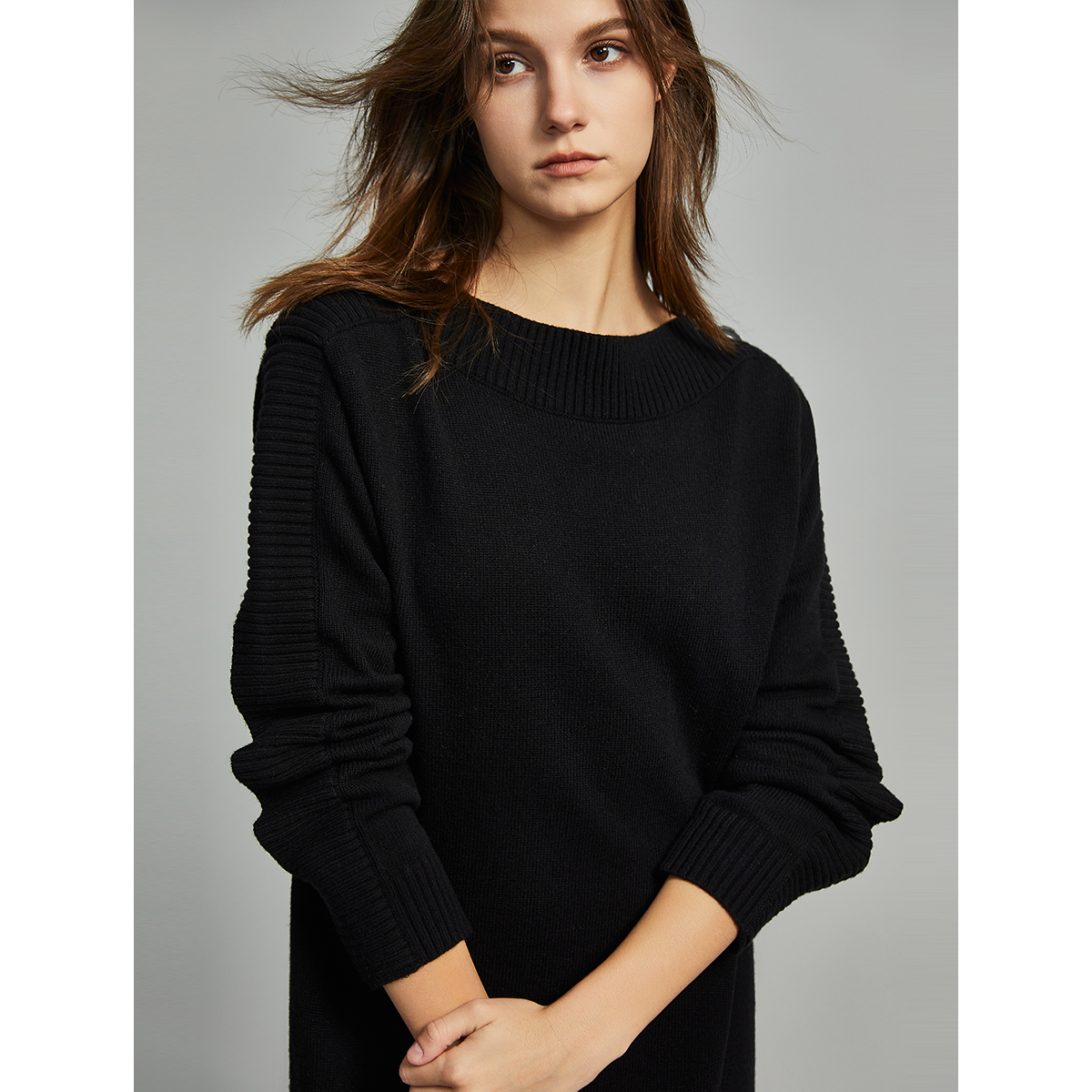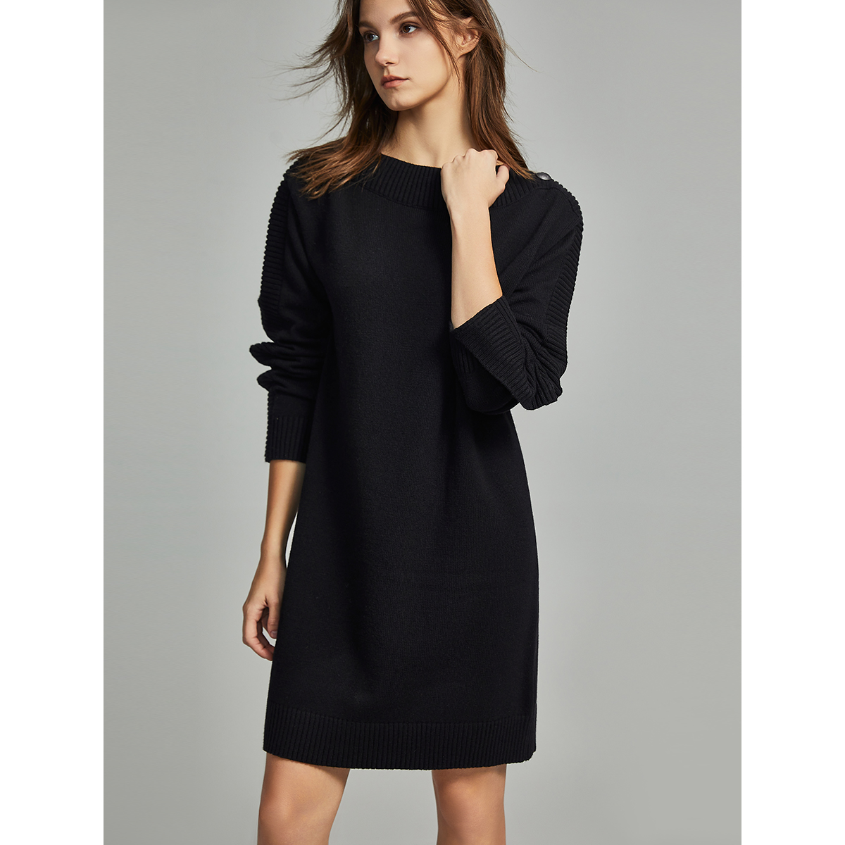 ELLE黑色设计感镂空系带连衣裙女2025秋装 垂坠感气质显瘦裙子 新款
