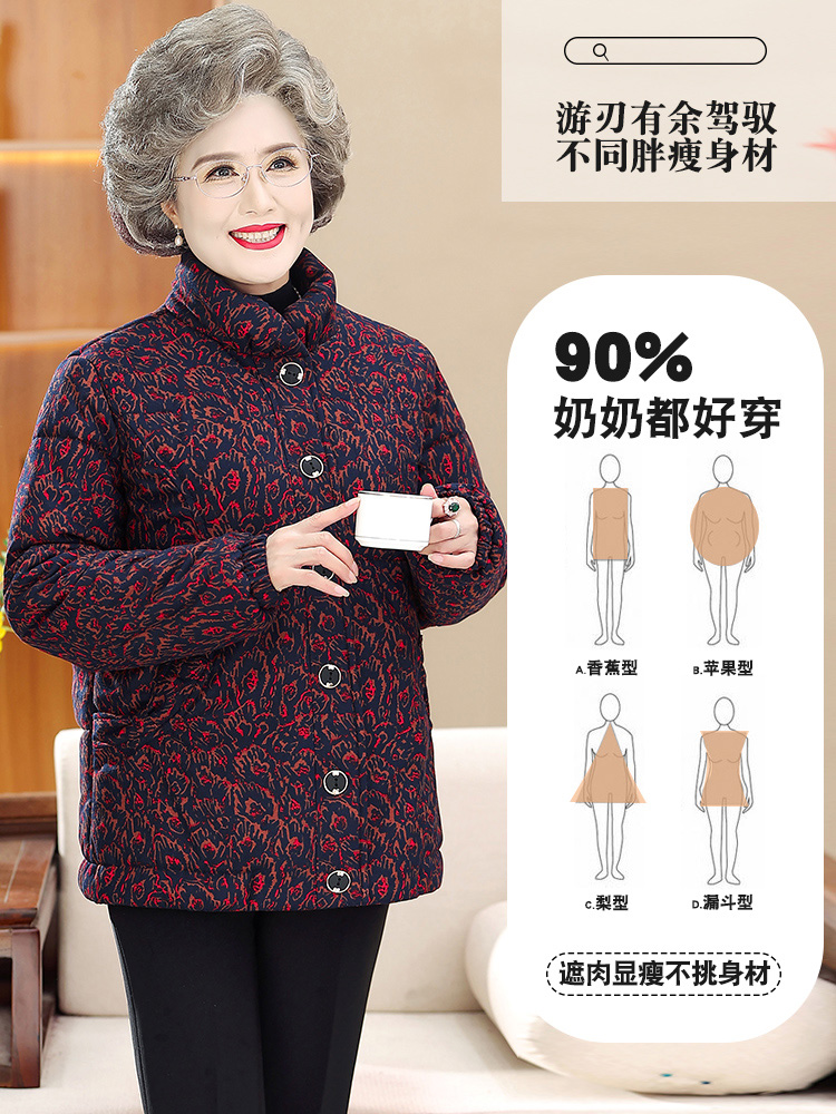 女棉服外套 衣服中老年人冬装 老太太棉衣奶奶棉袄加厚大码 妈妈冬季