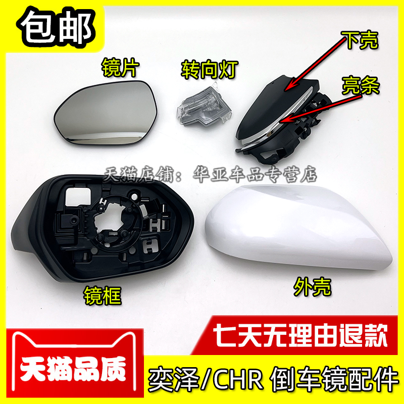 适配丰田CHR倒车镜外壳 奕泽反光镜后盖后视镜转向灯边框镜片配件