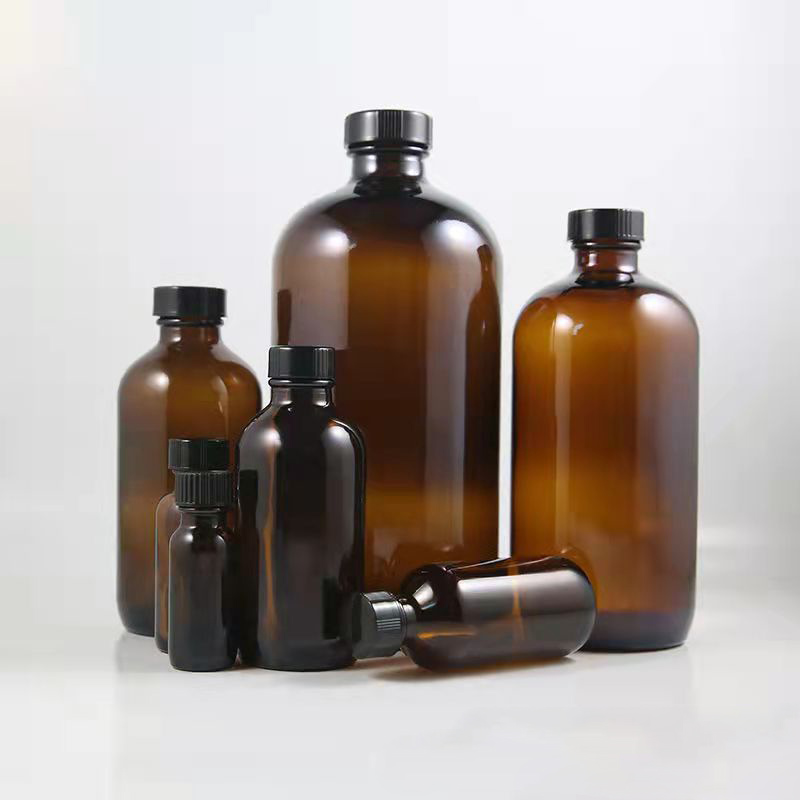 茶色波士顿精油瓶带黑盖 1000ml避光棕色波斯顿瓶饮料玻璃瓶 15ml