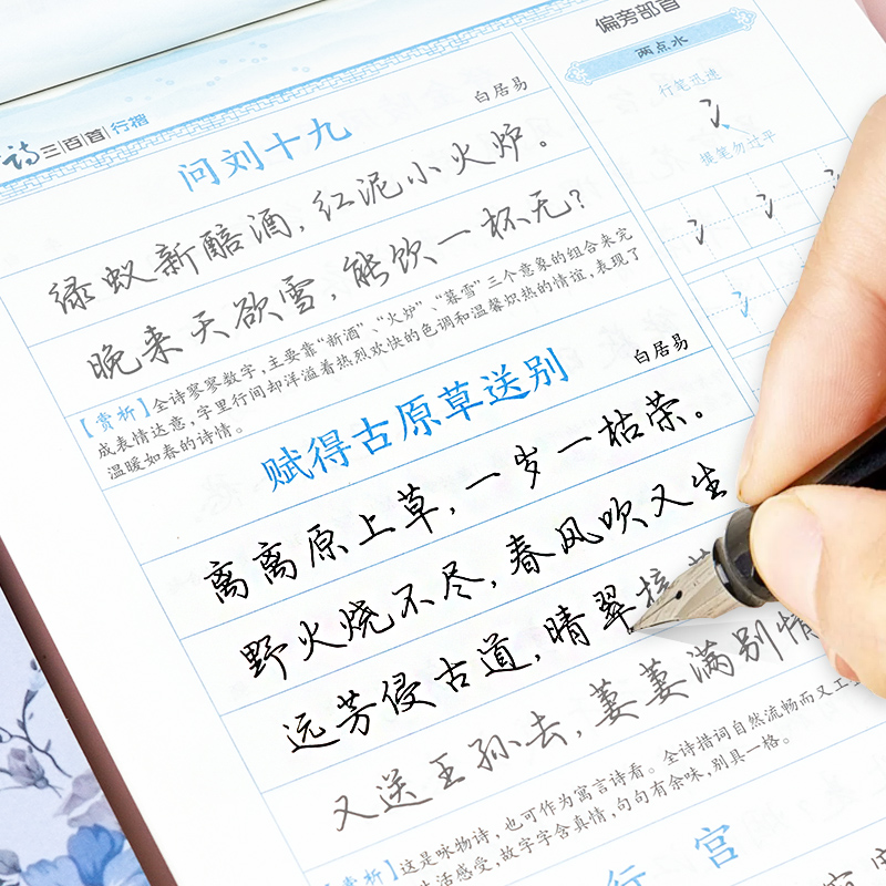 墨点字帖经典 文化唐诗三百首行楷字帖公务员成人学生行楷速成女生高中生硬笔书法行楷书临摹字帖荆霄鹏儿童小学生钢笔字帖练习纸