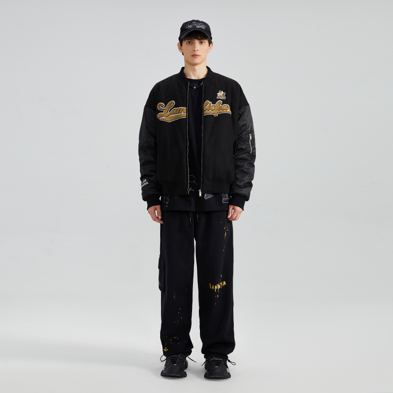 小狗英文刺绣休闲趣味外套506154 夹克男士 三福2025秋冬新款 工装