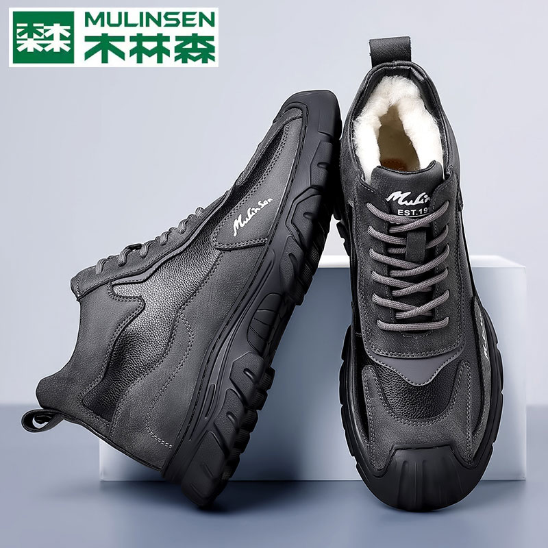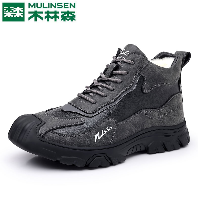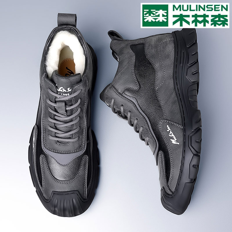 男加绒羊毛皮毛一体高帮时尚 木林森棉鞋 保暖棉皮鞋 冬季 雪地靴 男款