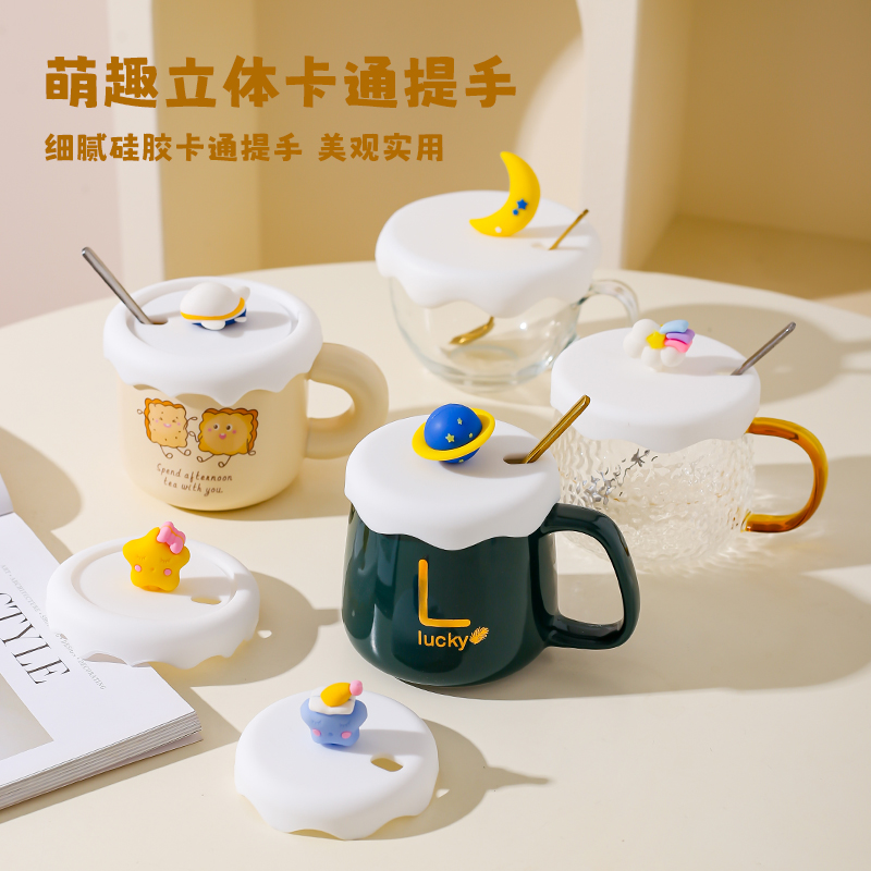 网红积雪盖通用杯盖加厚食品级环保硅胶杯盖创意马克杯水杯带勺孔