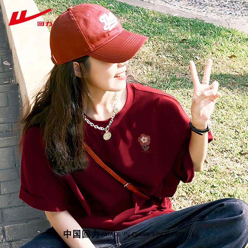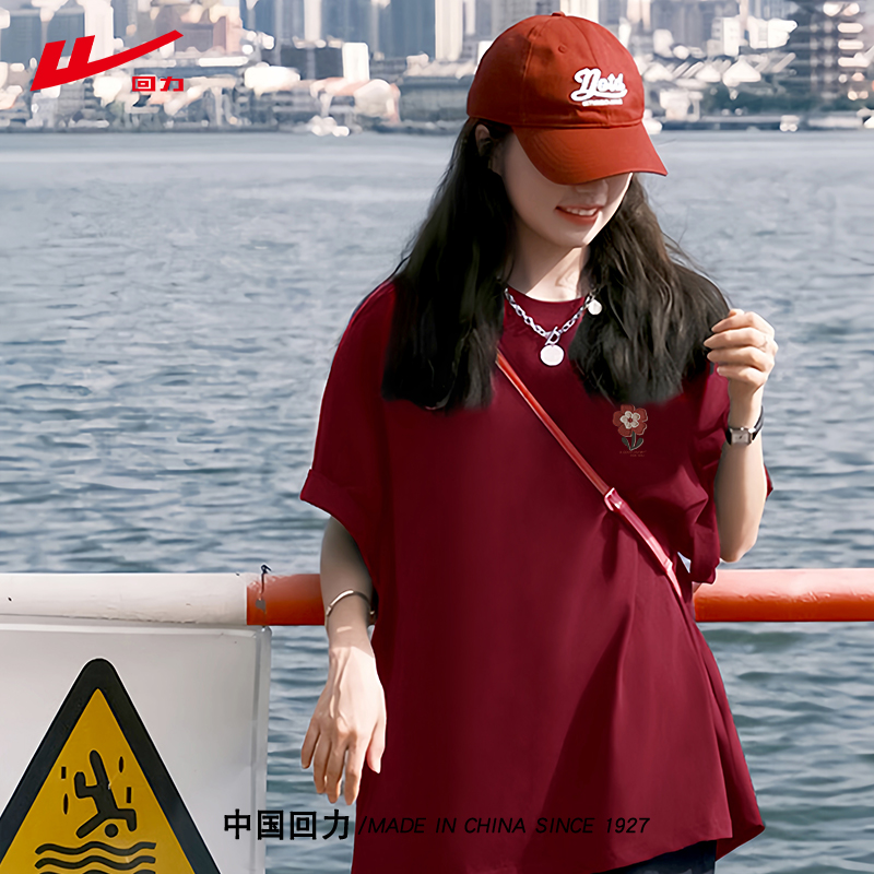 t恤胖mm大码 回力短袖 纯棉半袖 夏季 中考妈妈酒红色上衣A 女2025新款