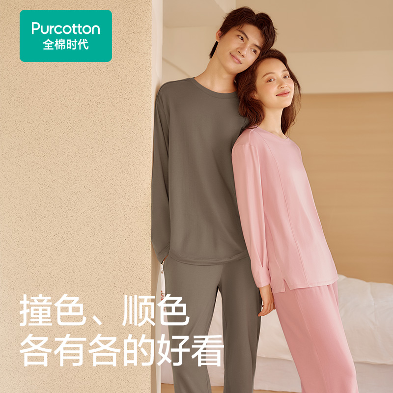 男春秋 带胸垫家居服套装 A类抗菌防螨纯棉情侣睡衣女长袖 红豆夏季