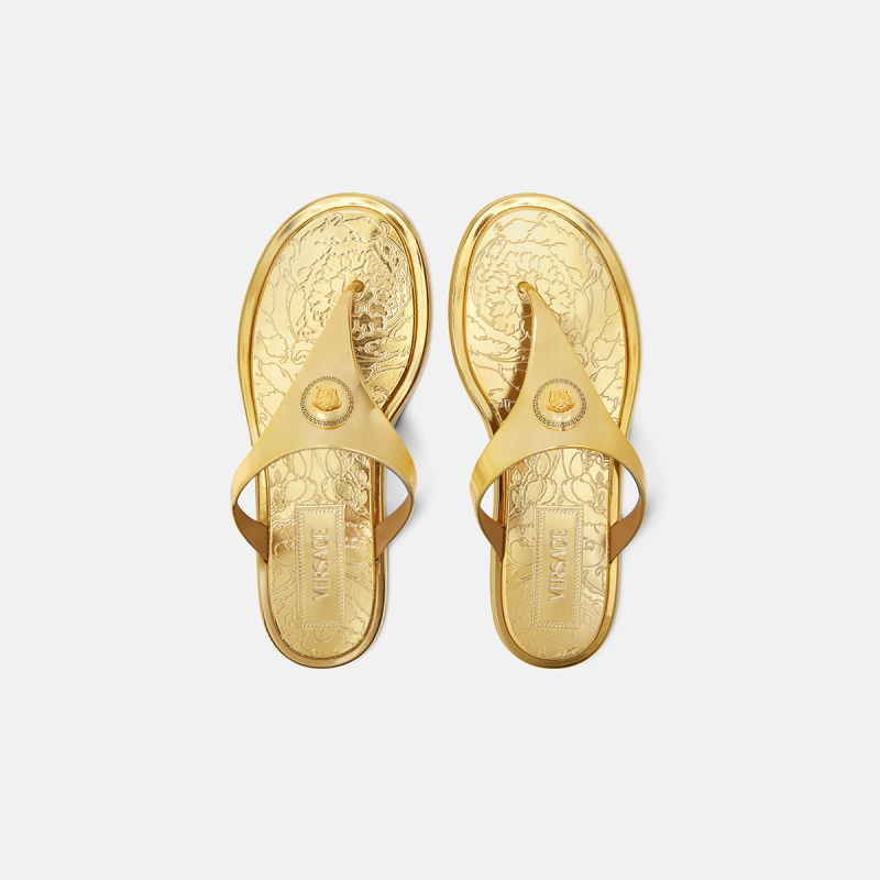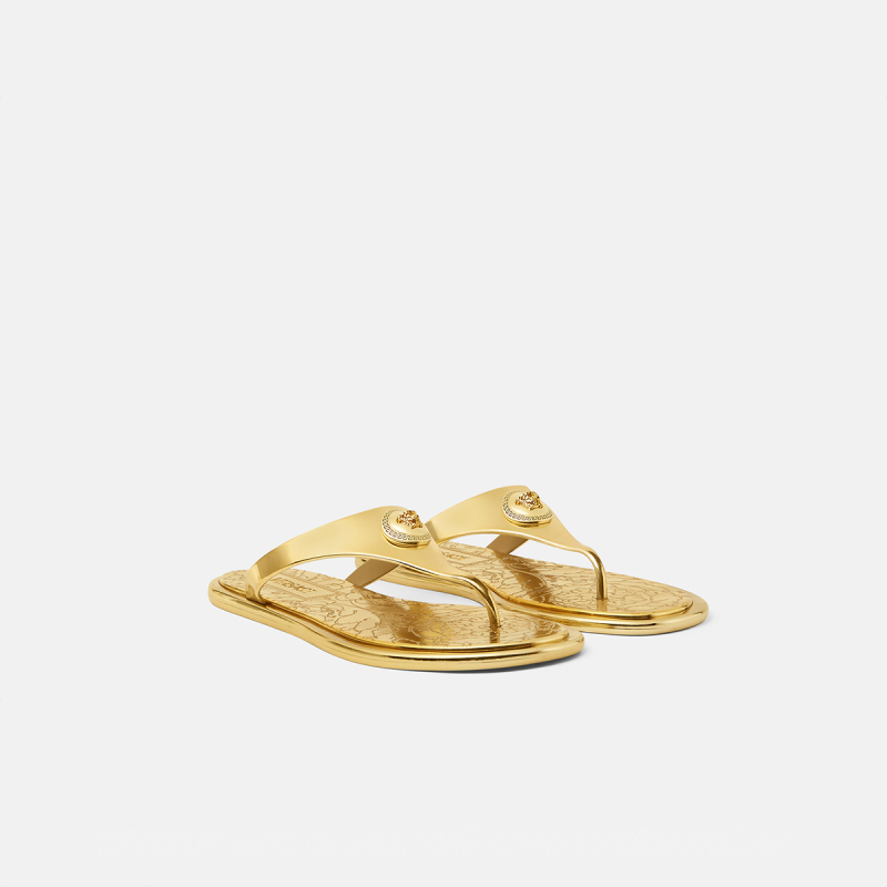 范思哲 VERSACE 女士Alia金属质感平底凉鞋 新品