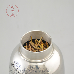 日式 纯手工锡制储茶罐 精工纯锡茶具配件 松影参天茶叶罐 藏六造