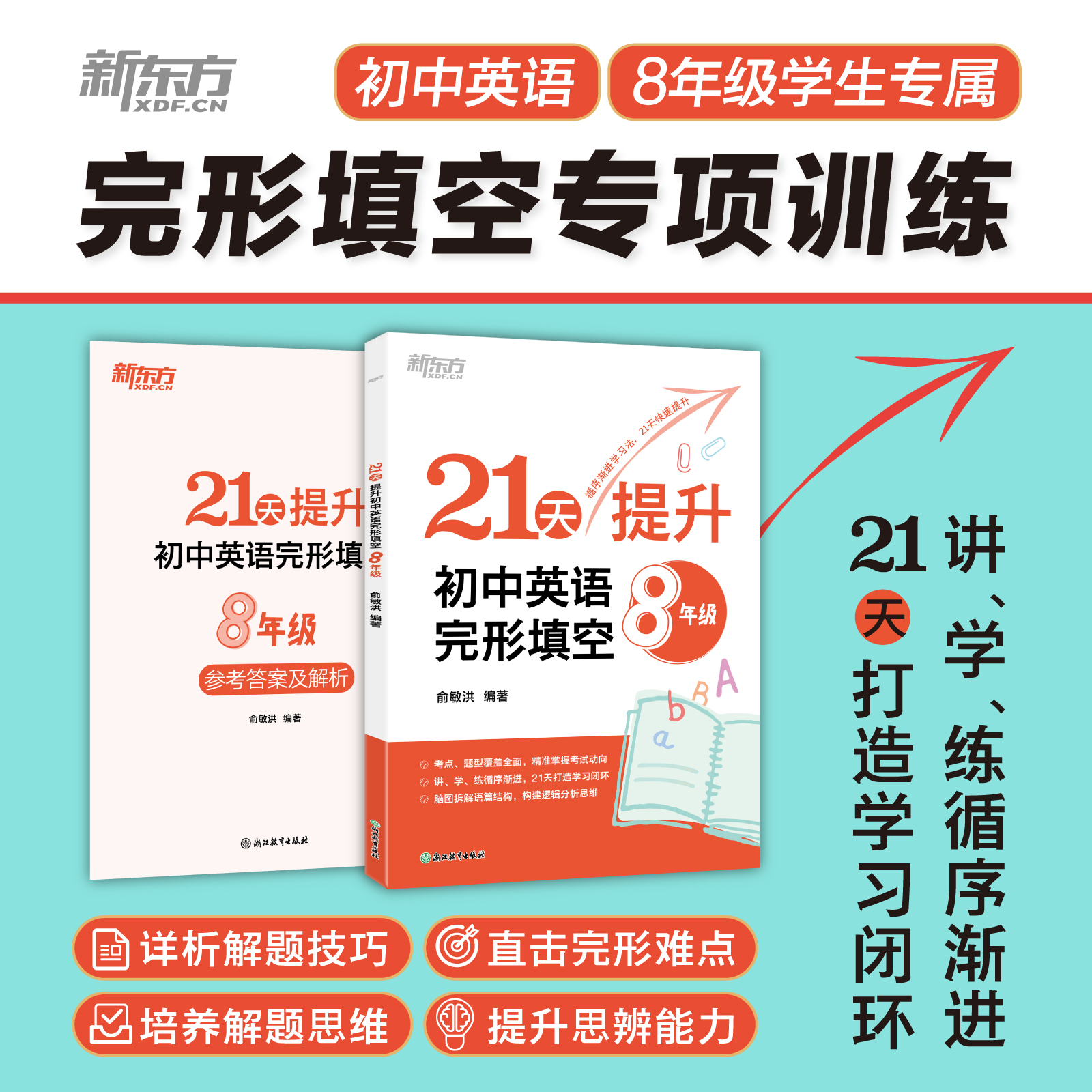 真题实战演练精准掌握考试动向 21天提升初中英语完形填空 英语轻松学 和俞敏洪一起学初中英语做题技巧 新东方 8年级