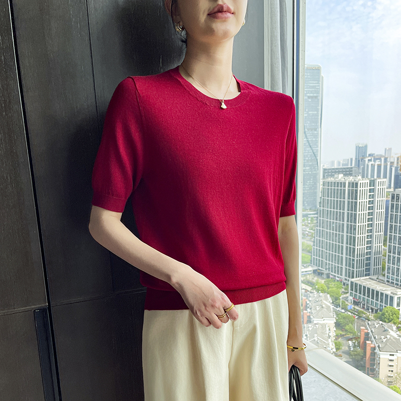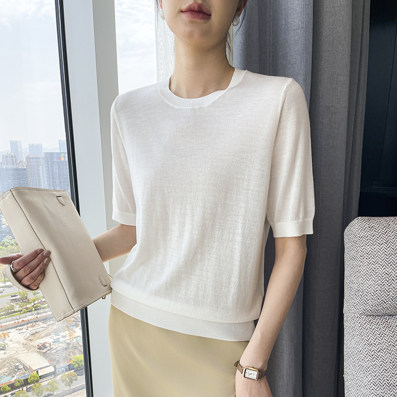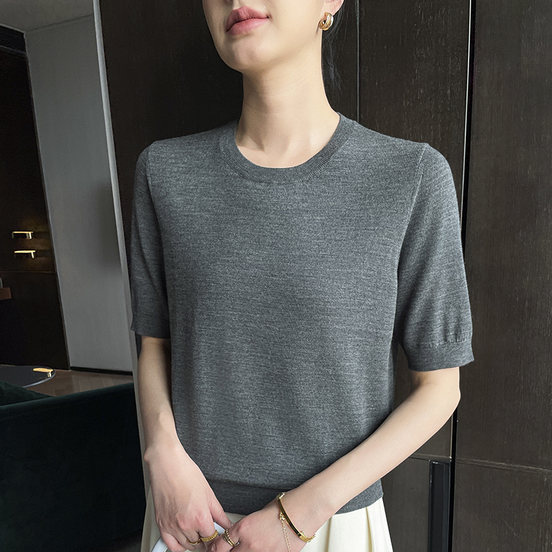 内搭上衣中袖 大码 毛衣女短袖 针织打底衫 t恤胖mm春秋 半高领五分袖